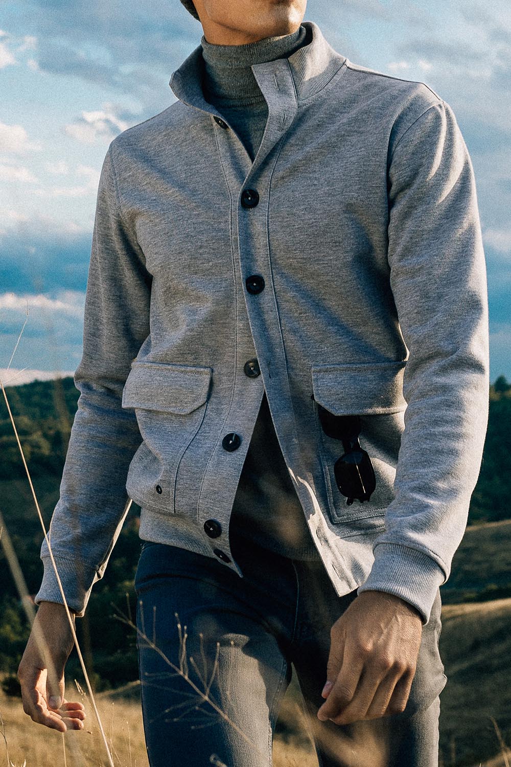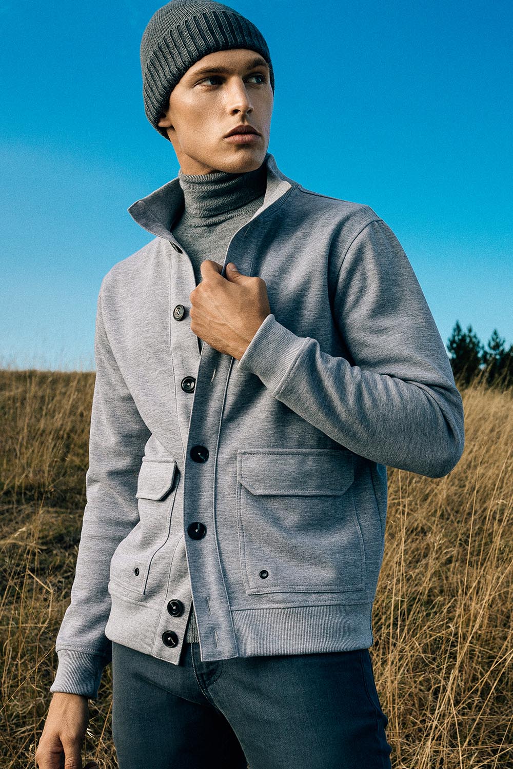 Duks/ jakna sačinjena od pamuka u glatkom pletivu sa šal kragnom i brendiranim dugmadima.