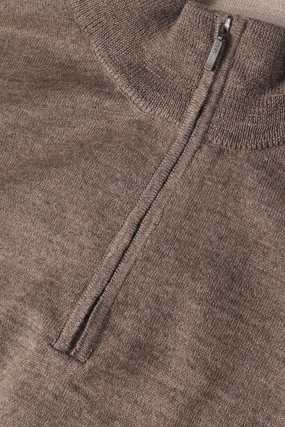 Garinello half zip džemper je neizostavan deo vašeg garderobera. Izrađen od ekstra fine merino vune i akrila. Praktičan za kombinovanje. Odlično se uklapa uz majicu, košulju, pantalone ili farmerke. Pogodan za svaku priliku. Sitne rebraste ramfle na rukavima i donjem delu. YKK rajsferšlus.