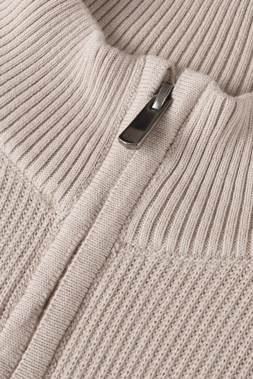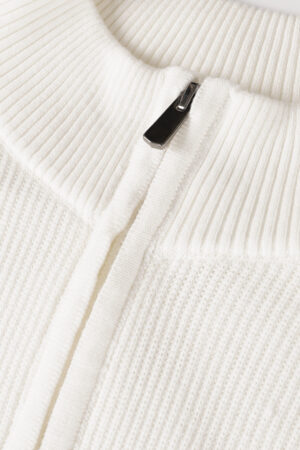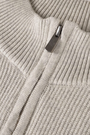 Lagani rebrasti zip džemper sa visokom kragnom. Idealno se slaže uz chino i cargo pantalone, a može se kombinovati i uz košulju za formalne prilike.