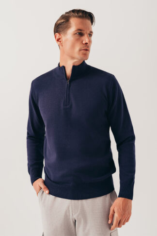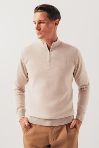 Garinello half zip džemper je neizostavan deo vašeg garderobera. Izrađen od ekstra finog pamuka. Praktičan za kombinovanje. Odlično se uklapa uz majicu, košulju, pantalone ili farmerke. Pogodan za svaku priliku. Sitne rebraste ramfle na rukavima i donjem delu.