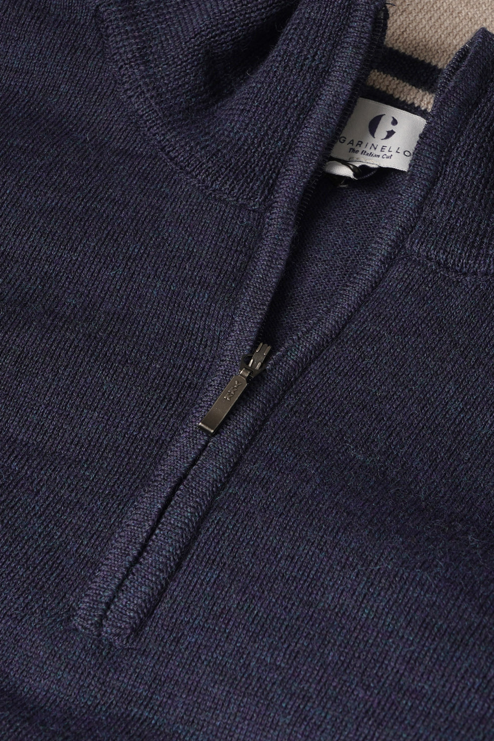 Garinello half zip džemper je neizostavan deo vašeg garderobera. Izrađen od ekstra fine merino vune i akrila. Praktičan za kombinovanje. Odlično se uklapa uz majicu, košulju, pantalone ili farmerke. Pogodan za svaku priliku. Sitne rebraste ramfle na rukavima i donjem delu. YKK rajsferšlus.