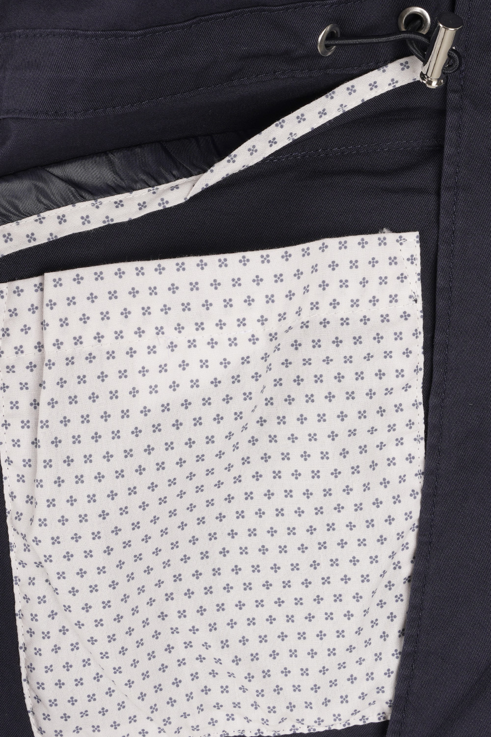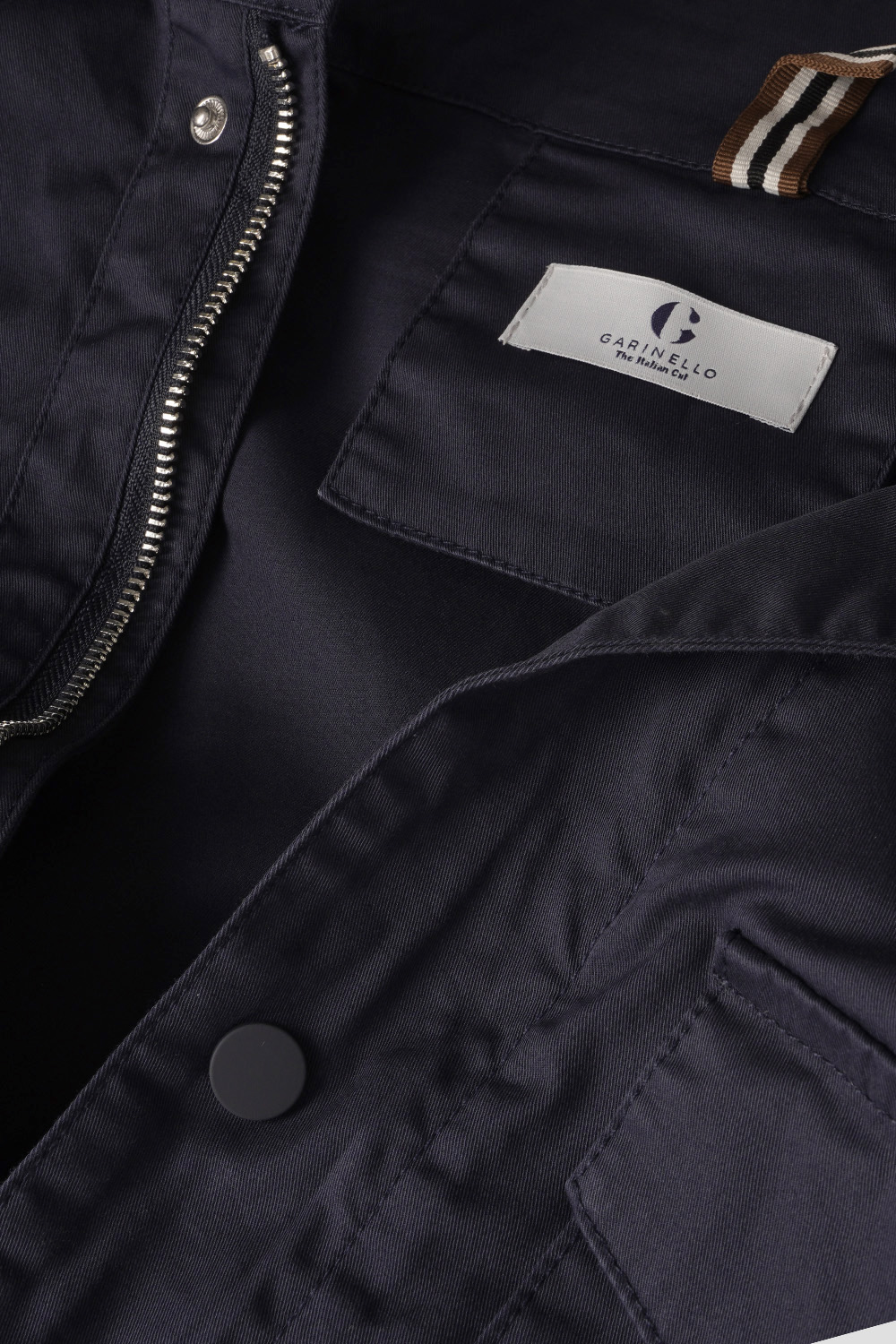 Lagana pamučna jakna sa dodatkom elastina. Četiri prednja džepa na preklop i jedan unutrašnji džep. Učkur za strukiranje. Bez postave, za komfor u toplim danima.