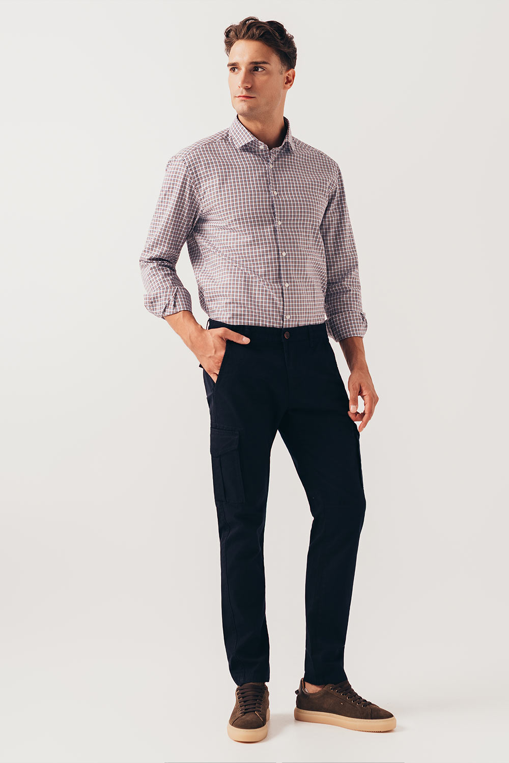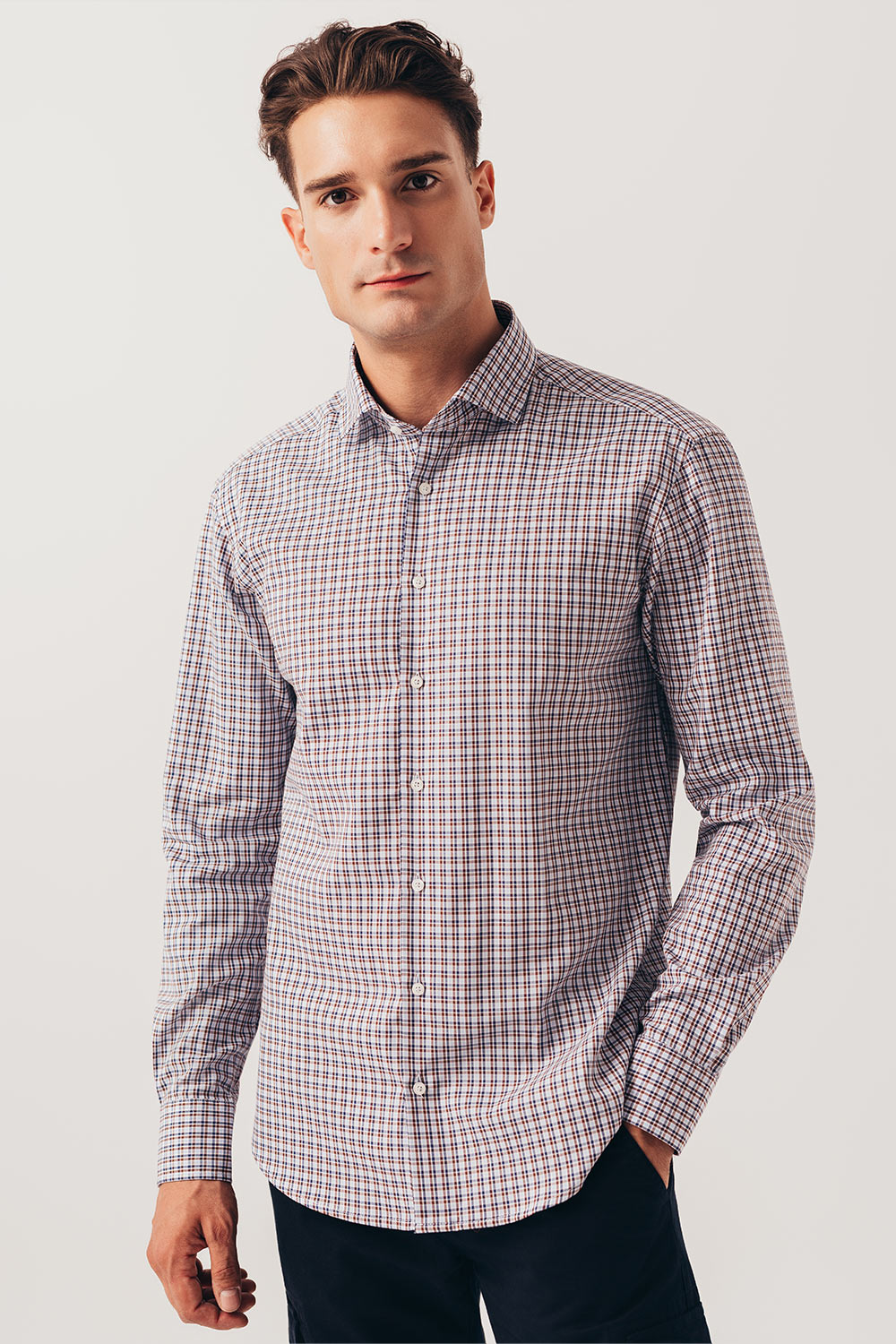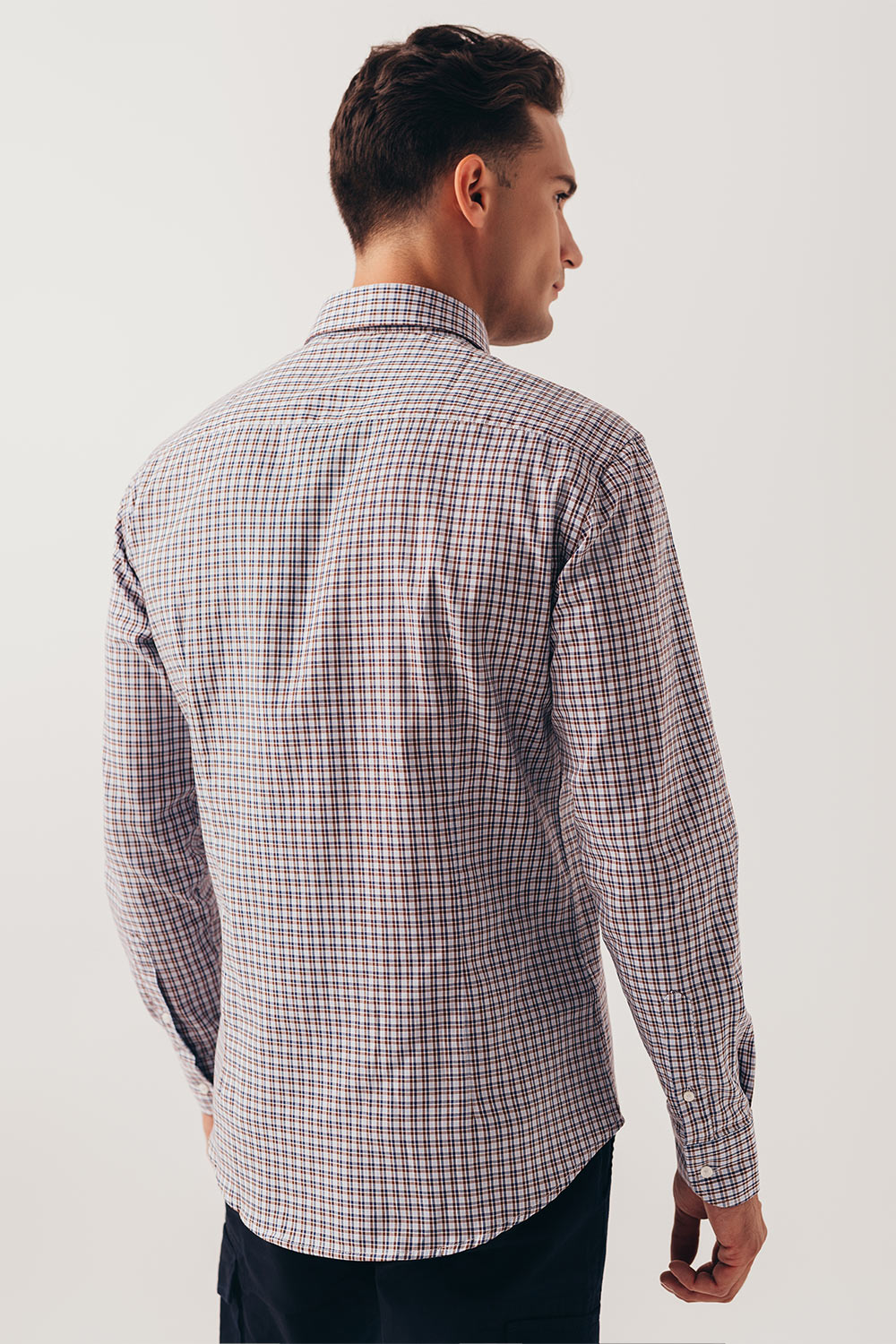 Braon plava karirana košulja sa soft kragnom (783C)