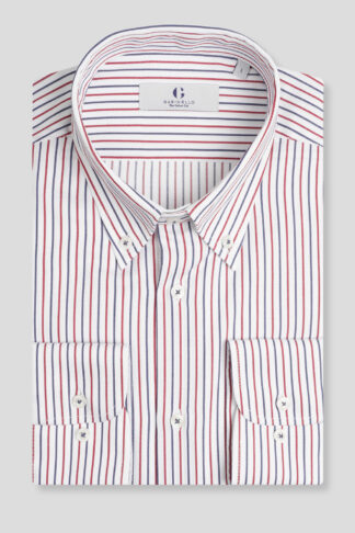 Sniženje 30%Teget crvena prugasta košulja sa francuskom kragnom (784A)