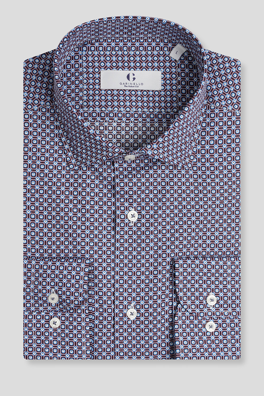 Košulja sa bordo plavim digitalnim printom. Udobna i lagana, besprekorna kako za poslovni dan, tako i za opušeteniju varijantu stajlinga. Veoma je praktična i lako se kombinuje sa drugom garderobom.