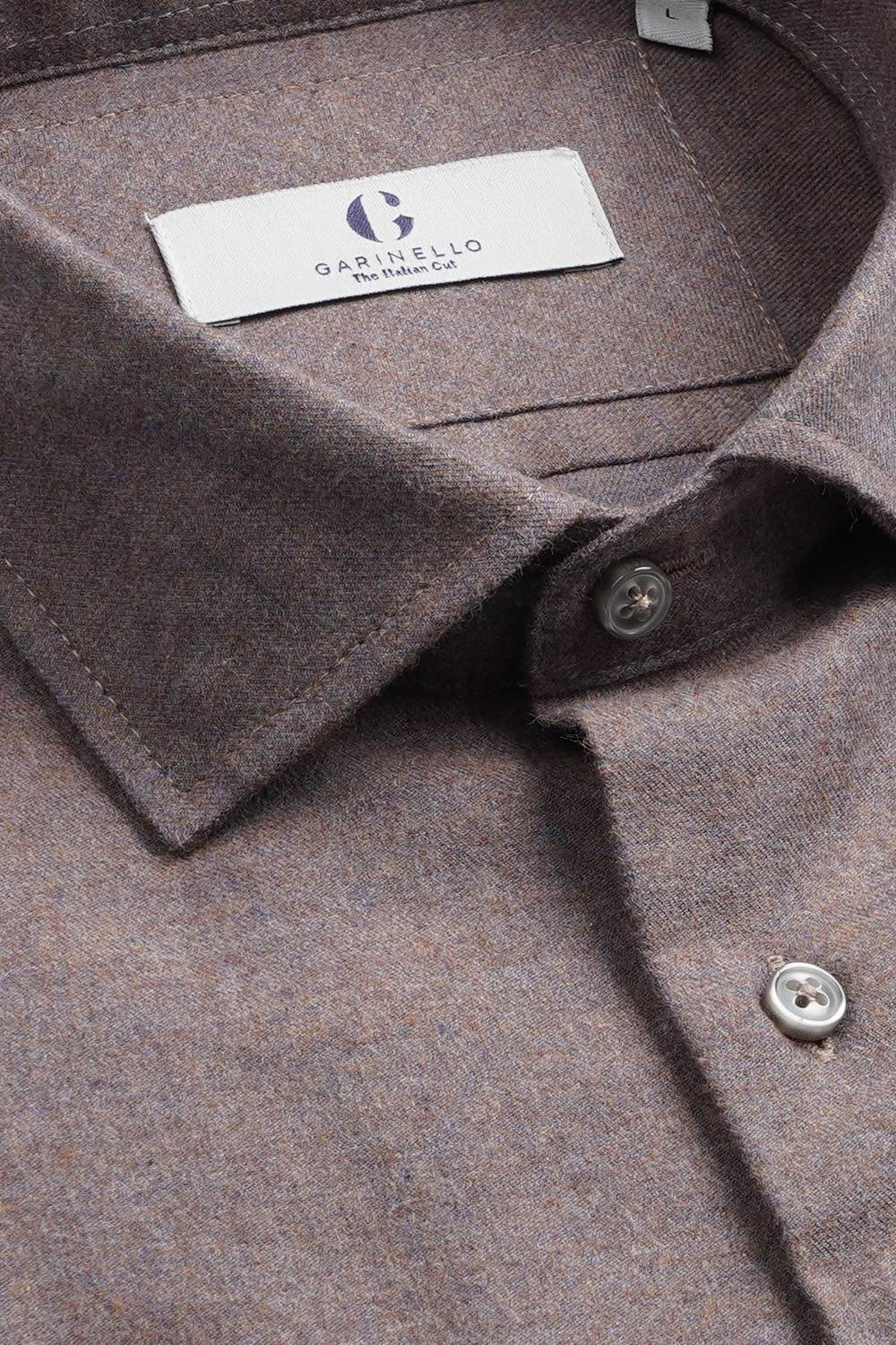 Braon plava melanž košulja. Udobna i lagana, besprekorna kako za poslovni dan, tako i za opušeteniju varijantu stajlinga. Veoma je praktična i lako se kombinuje sa drugom garderobom.
