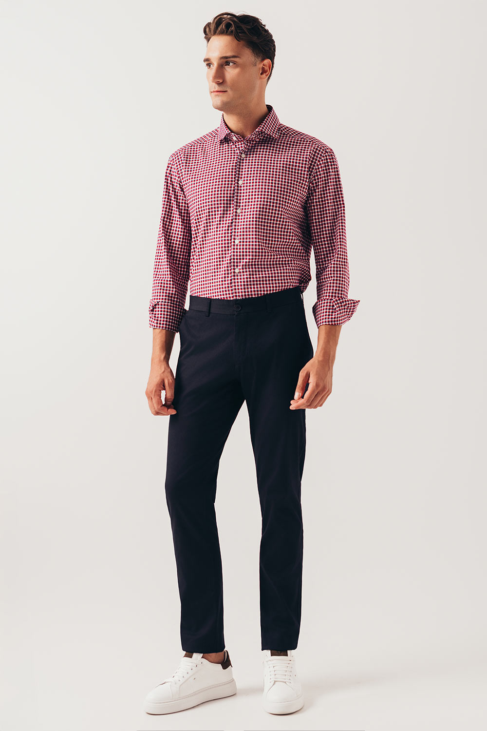 Teget crvena karirana košulja sa soft kragnom (783C)