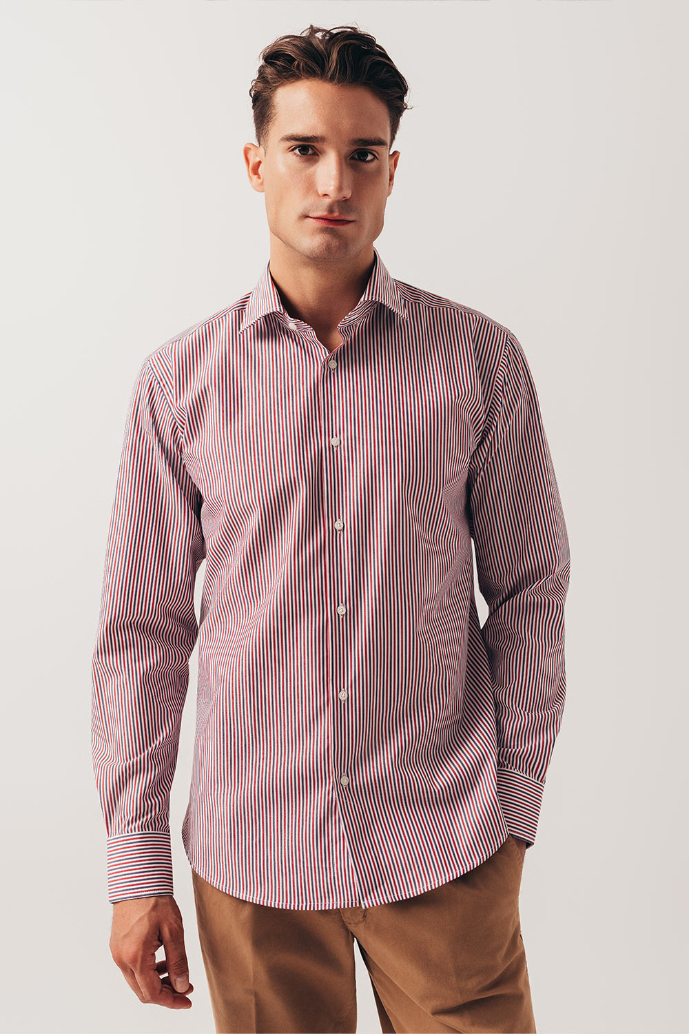 Teget crvena prugasta košulja sa francuskom kragnom (784A)