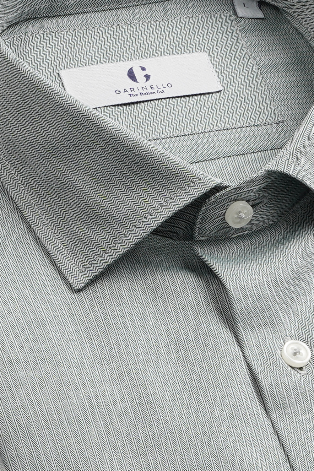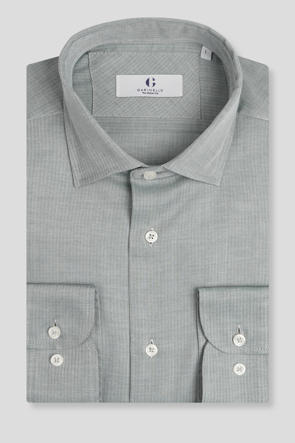 Zelena košulja u tkanju ¨riblja kost¨. Udobna i lagana, besprekorna kako za poslovni dan, tako i za opušeteniju varijantu stajlinga. Veoma je praktična i lako se kombinuje sa drugom garderobom.