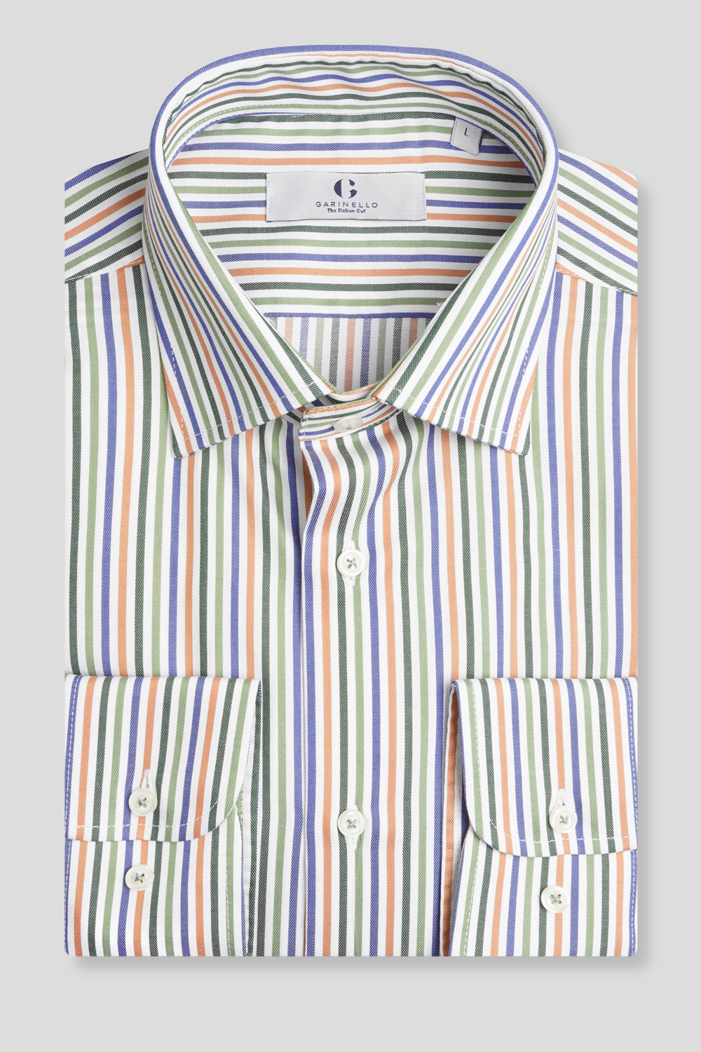 Zeleno-narandžasta prugasta košulja slim fit (761J)