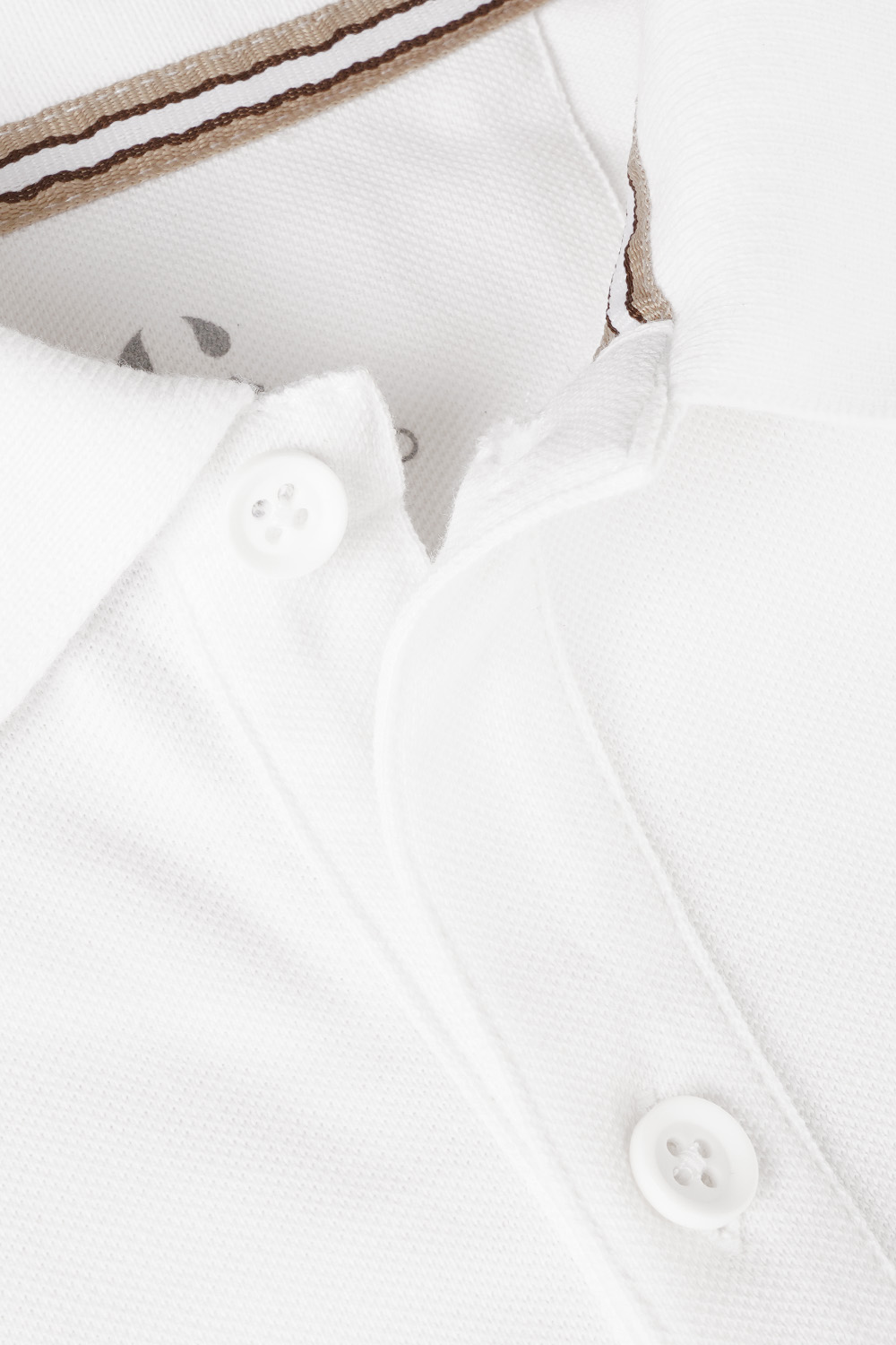 Garinello polo majica je klasik koji nikad ne izlazi iz mode. Komforna, udobna, idealna za tople letnje dane. Basic model izveden u jednom tonu za one koji vole jednostavnost. Kopčanje na dva dugmeta, rebrasta ranfla na rukavima, diskretni natpis brenda na bočnoj etiketi.