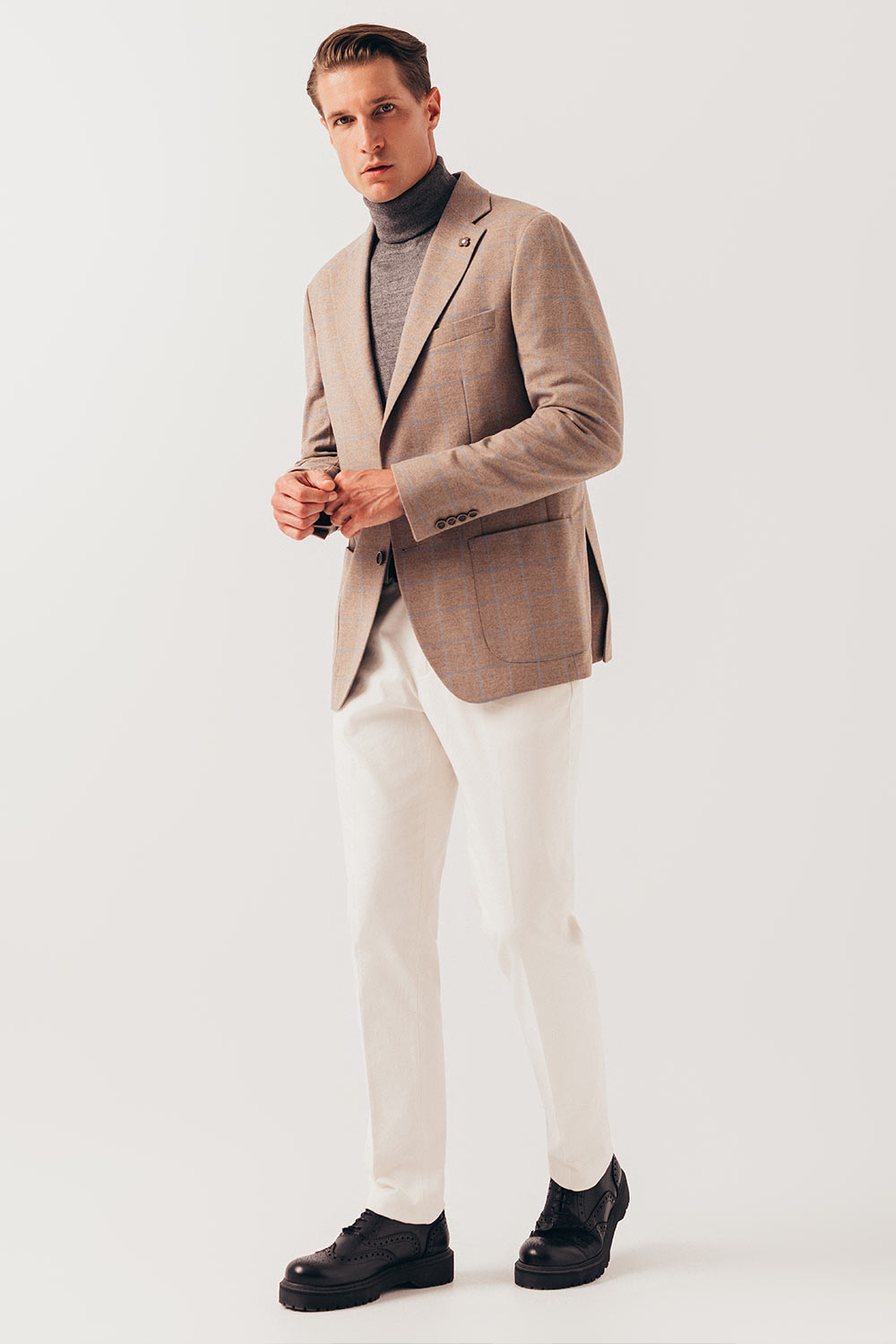 Bež karirani vuneni sako (659B)