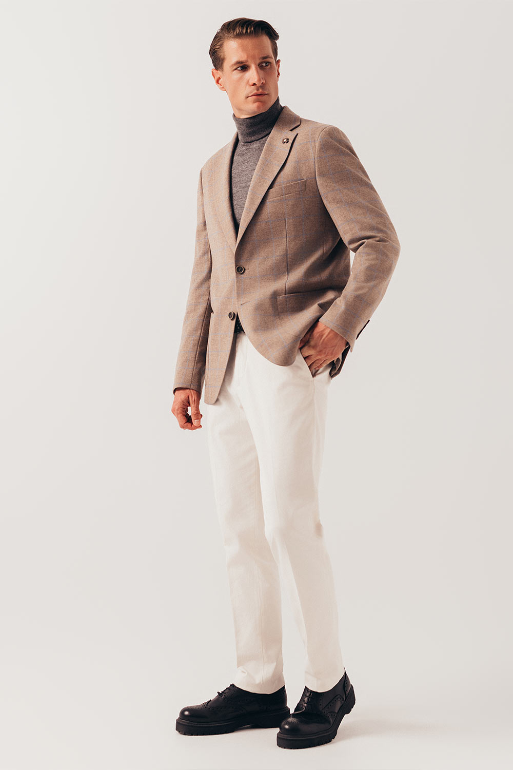 Garinello jesenja serija sakoa od pažljivo biranih materijala rađena u malom broju primeraka. Odmerene, svedene linije ovog sakoa pružaju osećaj elegancije, dok klasičan kroj nikad neće izgubiti na aktuelnosti. Lako se uklapa uz sve modne kombinacije bilo da vam je potreban formalan ili kežual izgled.