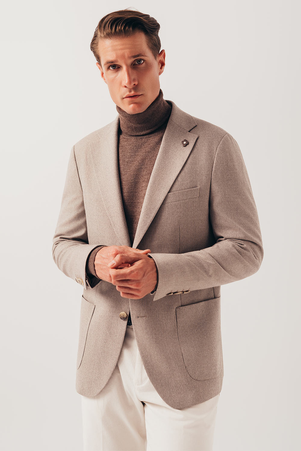 Garinello jesenja serija sakoa od pažljivo biranih materijala rađena u malom broju primeraka. Odmerene, svedene linije ovog sakoa pružaju osećaj elegancije, dok klasičan kroj nikad neće izgubiti na aktuelnosti. Lako se uklapa uz sve modne kombinacije bilo da vam je potreban formalan ili kežual izgled.