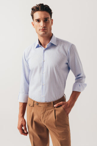 Sniženje 30%Svetloplava Easy care prugasta košulja sa francuskom kragnom (784A)