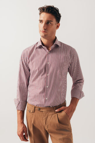 Sniženje 30%Teget crvena prugasta košulja sa francuskom kragnom (784A)