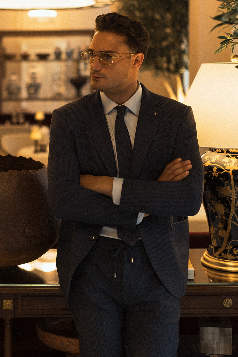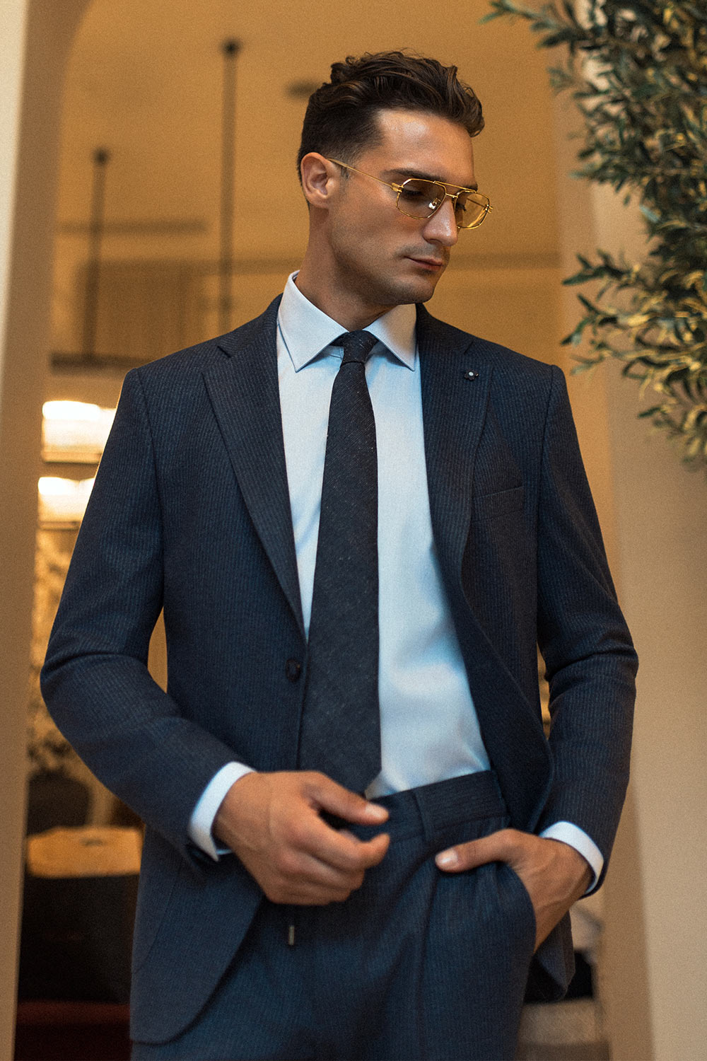 Garinello prugasto odelo rađeno od pažljivo biranih materijala. Odlikuje ga klasičan kroj odmerenih i elegantnih linija koji nikad neće gubiti na aktuelnosti. Osećajte se sofisticirano i sigurno u svakoj prilici.