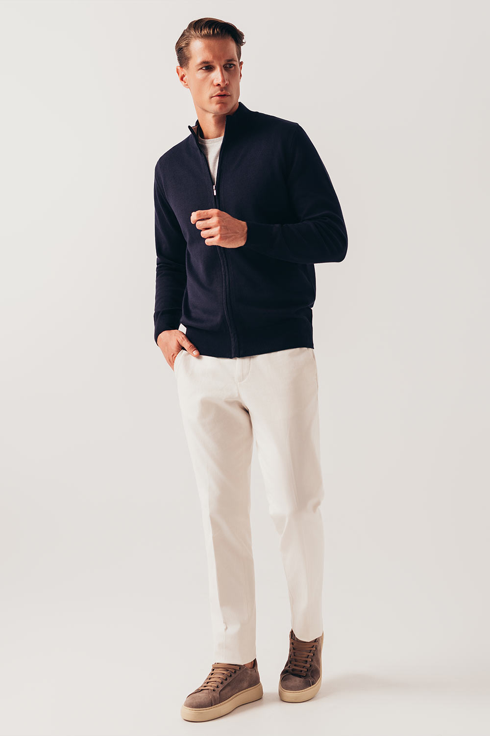Zip džemper sa visokom kragnom za maksimalnu udobnost u hladnijim danima. Idealno se slaže uz chino i cargo pantalone, a može se kombinovati i uz košulju za formalne prilike.